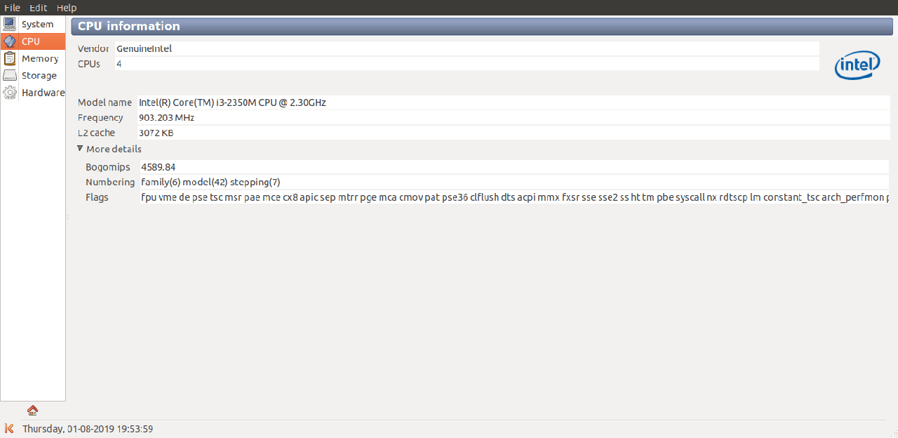Sysinfo 是 HardInfo 和 lshw-gtk 实用程序的另一个替代品,可用于获取下面列出的硬件和软件信息。