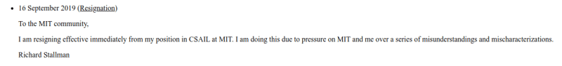 最后,Stallman 先是从 MIT 辞职,现在又从 自由软件基金会 辞职。