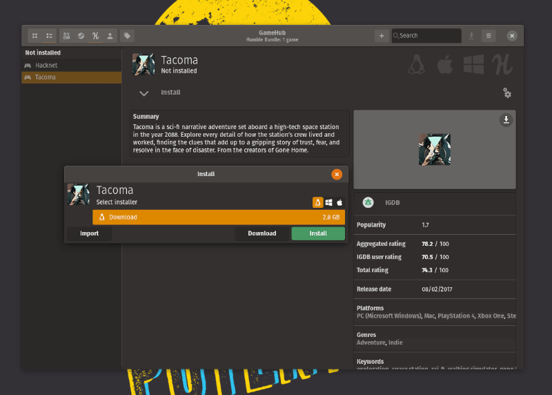 但对于 GOG/Humble Bundle,登录后就能直接、下载安装游戏。必要的话,对于那些不支持在 Linux 上运行的游戏,你可以使用兼容工具。
