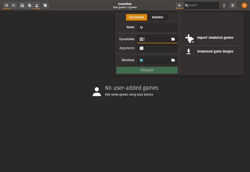 可惜的是,现在无法在 GameHub 内搜索 Linux 游戏。如上图所示,你需要分别下载游戏,随后再将其添加到 GameHub 中。