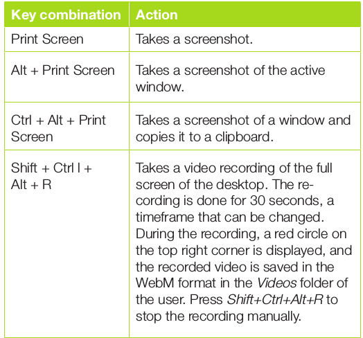 以下快捷方式可用于打印屏幕或录制屏幕视频。