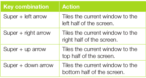 可以使用下面提供的快捷方式以不同方式将窗口平铺。
