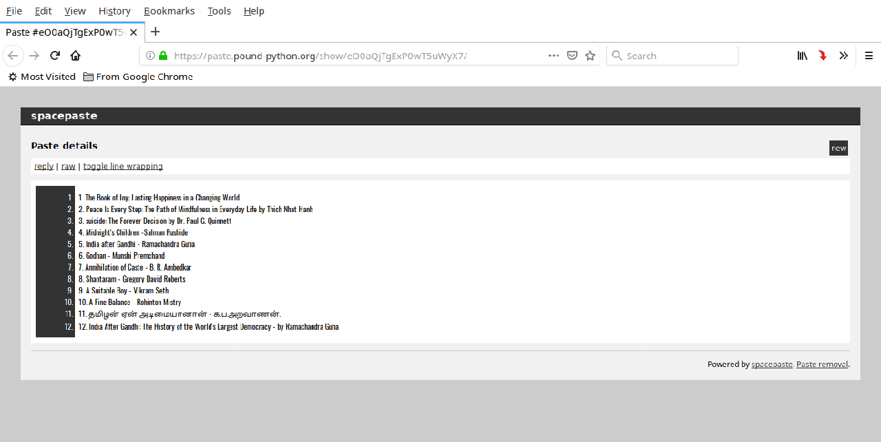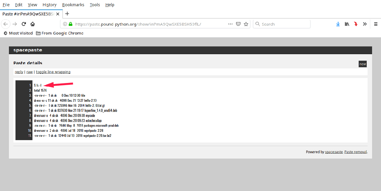 默认情况下,Wgetpaste 会将文本片段上传到 poundpython(https://paste.pound-python.org/)服务。