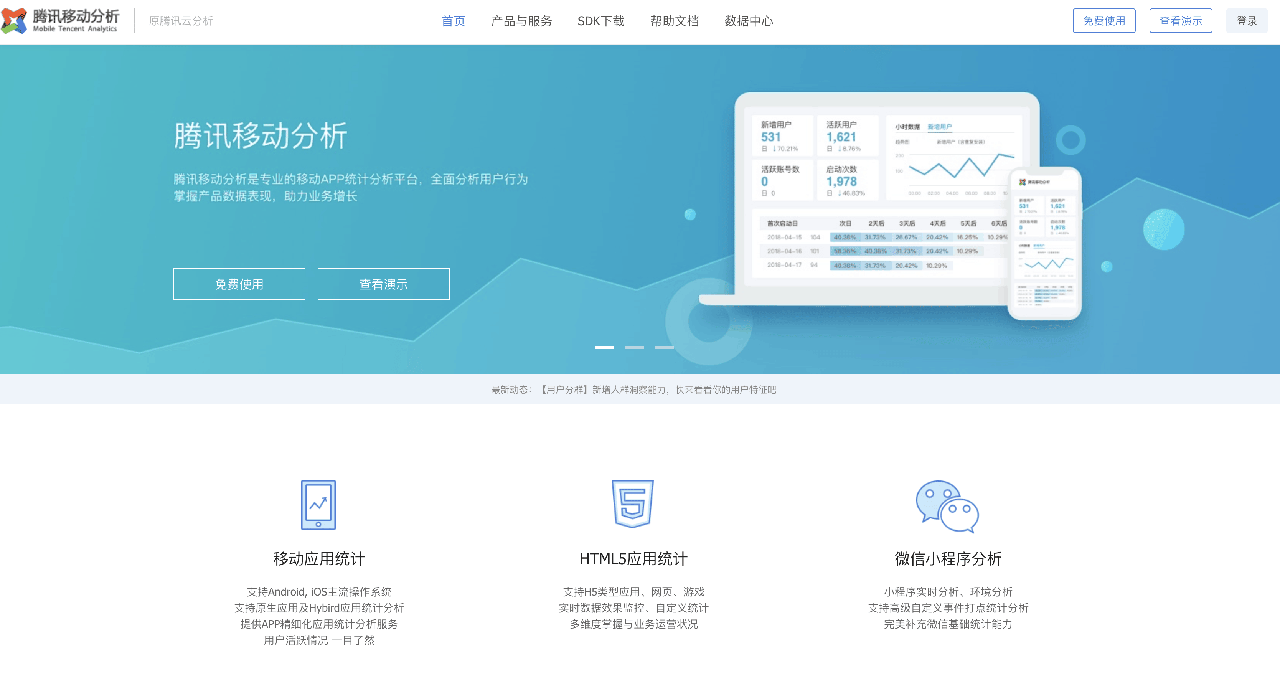 在应用统计领域,可选项非常多,大部分人使用的是 Google Analytics ,不过由于这个产品的面向用户主要是国内的用户,因此我更倾向选择加载速度更快的产品,最终我选择的是来自腾讯的移动应用分析(MTA),腾讯的移动应用分析中,提供了 HTML5 产品的接入,因此可以完成 TLDR 的统计。