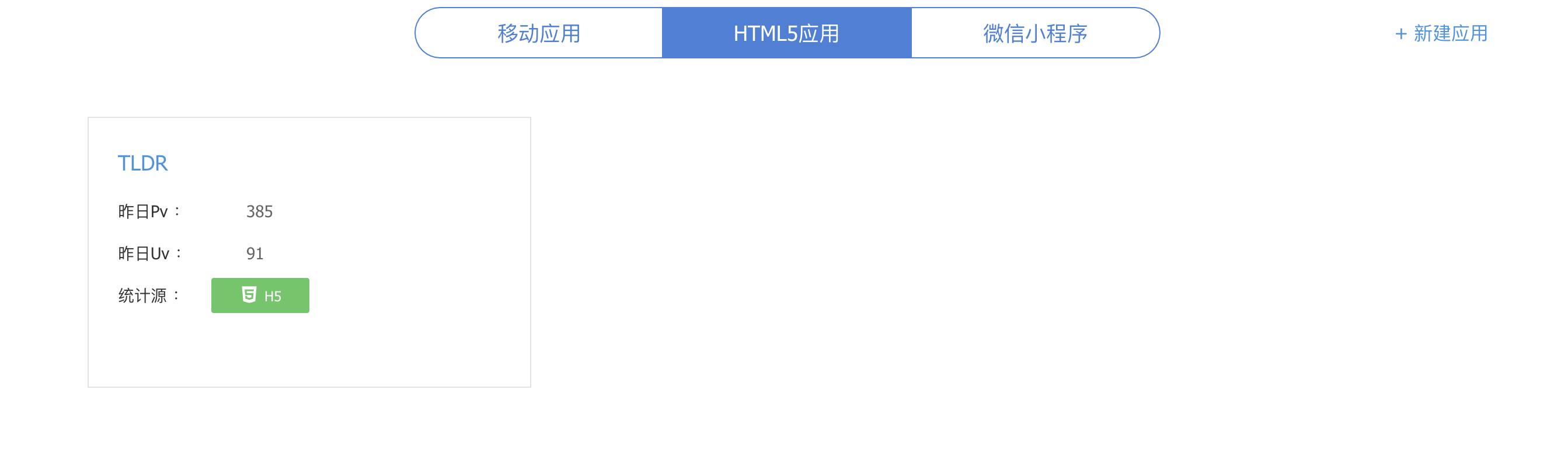 腾讯移动应用分析的接入并不复杂,首先,你需要登陆其官网,创建一个 HTML5 应用。