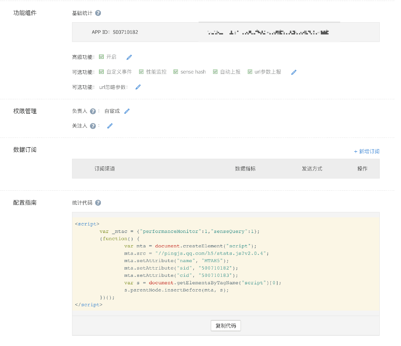 配置完成后,你会获得具体的统计的代码,接下来就可以进行接入。