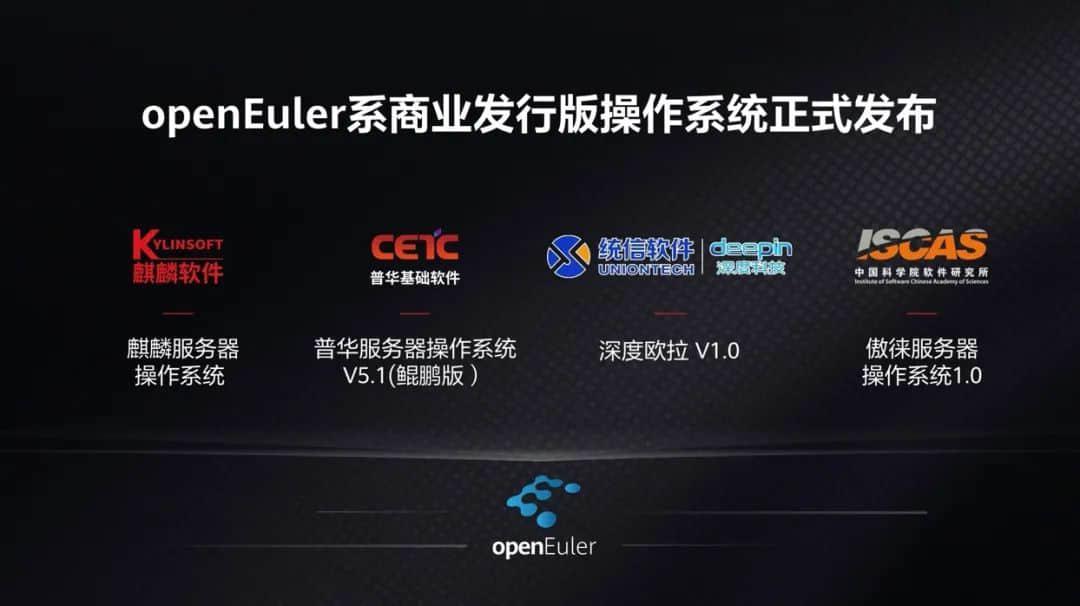 这些其实并不出乎我们的预期,不过在这次会议上,大家之前关注颇多的 openEuler 这次披露了一个重要消息,它成功地和国内 4 家重要的操作系统厂家麒麟软件、普华基础软件、统信软件、中科院软件所等达成了合作,共同宣布基于 openEuler 的商用版本操作系统正式发布,以加速鲲鹏相关技术在各行业的落地和应用。