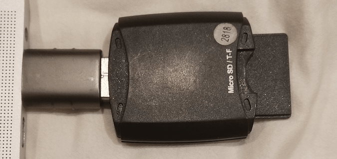 是的,那是一个 USB C 到 USB A 适配器,然后是一个 USB 到 SD 卡读卡器,以及一个 SD 到 micro SD 适配器。我可能可以在网上找到一些东西来简化此过程,但这些都是我手头有的部件,以支持我家五花八门的 Mac、Windows 和 Linux 主机。说到这里就不多说了,但我希望你能从这些疯狂的东西中得到一个笑点。