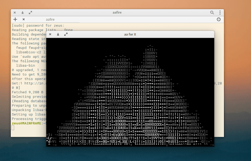完成后,你输入下面的命令,你的终端就会燃起一团火焰: