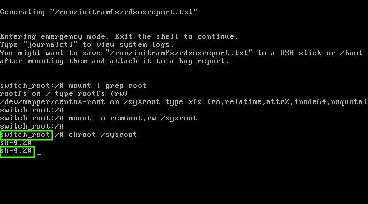 # mount -o remount,rw /sysroot