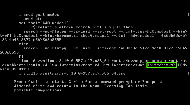 init=/bin/bash或init=/bin/sh替换内核中的rhgb quiet语句来以单用户模式启动 CentOS/RHEL 7/8 系统 - 方法 3:通过用