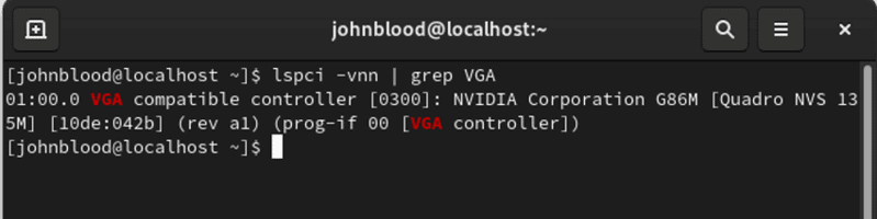 现在,你需要确定 Linux 系统中有哪些显卡(或芯片)。打开终端并输入以下命令: