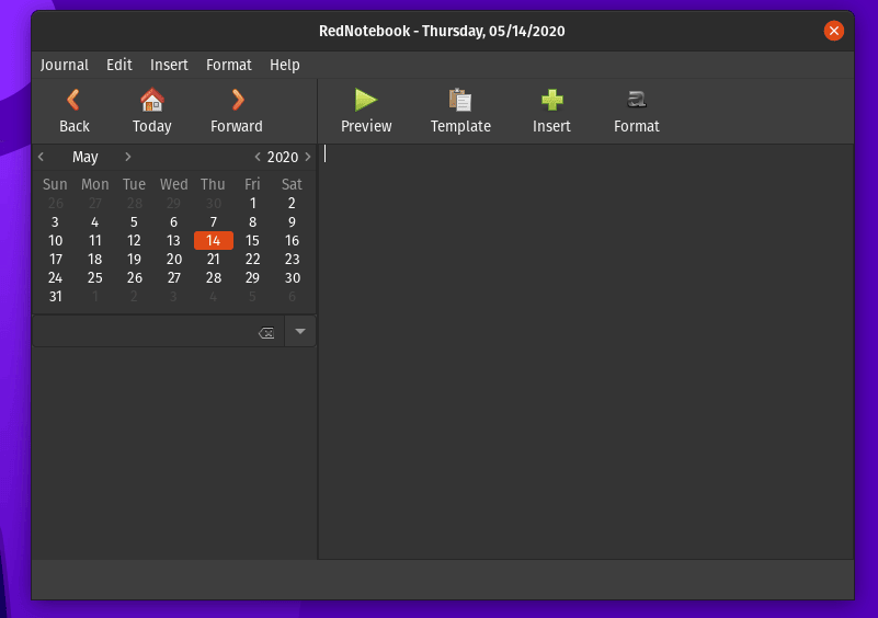 是的,它不支持同步,如果你是一个不想要同步功能的人,RedNoteBook 应该是一款传统风格的记事应用,侧边栏为日历。