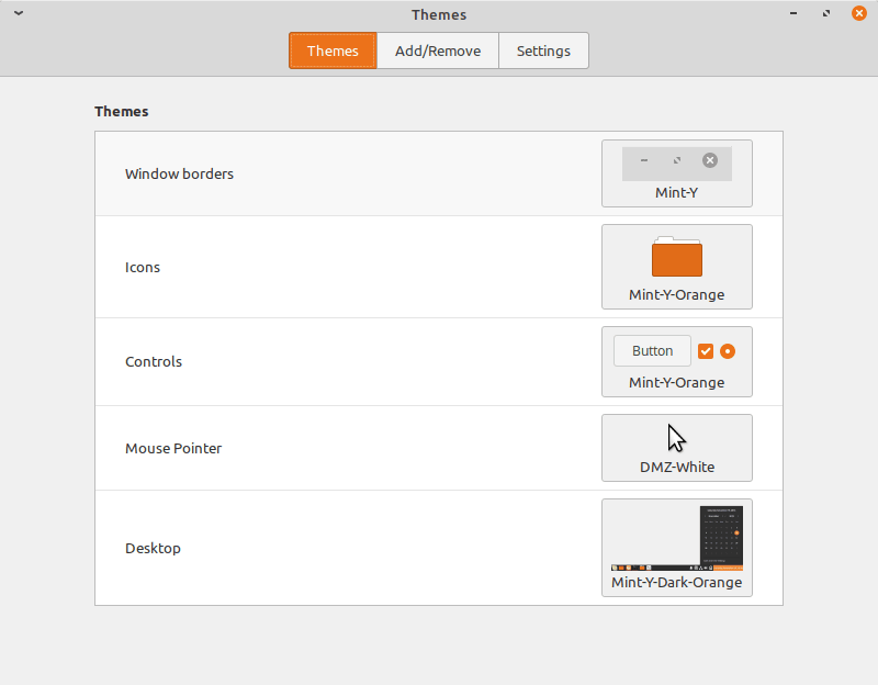 Cinnamon 控制中心集中提供许多桌面配置选项。通过访问 “主题” 部分,你可以选择桌面基本方案和图标、窗口边框、鼠标指针和控件外观。字体对桌面的整体外观有很大的影响,而 Cinnamon 让改变字体比以往任何时候都要容易。