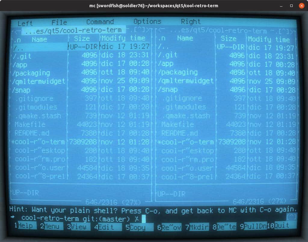 git clone https://github.com/Swordfish90/cool-retro-term.git cd cool-retro-term qmake && make