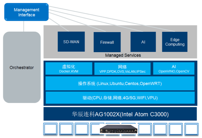 近期,华辰连科基于行业主流 uCPE 硬件平台,并结合企业在边缘设备上的核心应用,发布了 AI 智能网关整体解决方案。该解决方案将以网络处理见长的边缘侧传统智能接入网关,融合 AI 推理能力,将 AI 算力推向网络终端,可提供从驱动、操作系统一直到应用层的整套开发框架,帮助用户更好的完成产业的数字化转型升级。