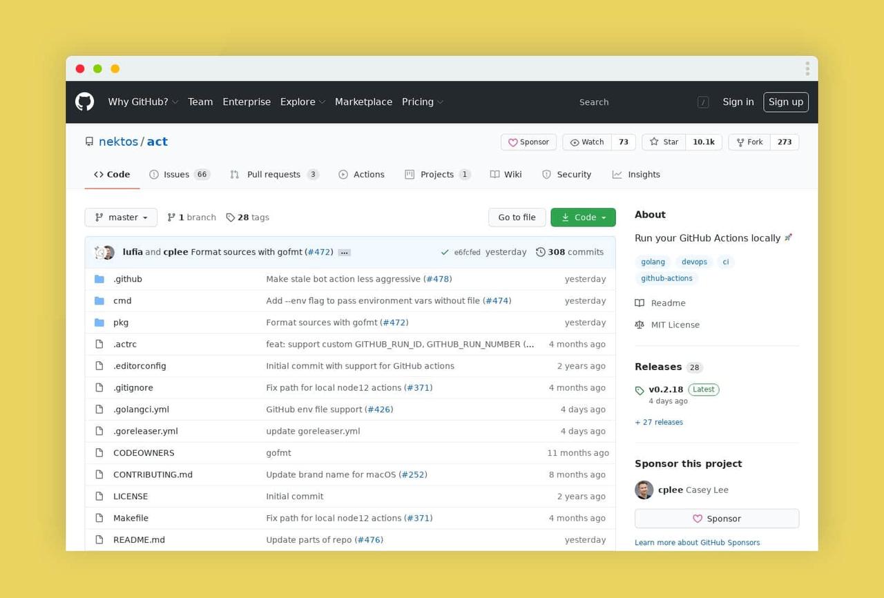 安装完成 act ,就可以通过执行 act 命令来在本地执行 Action ,比如,执行 act pull_request 来触发 GitHub 的拉取请求事件