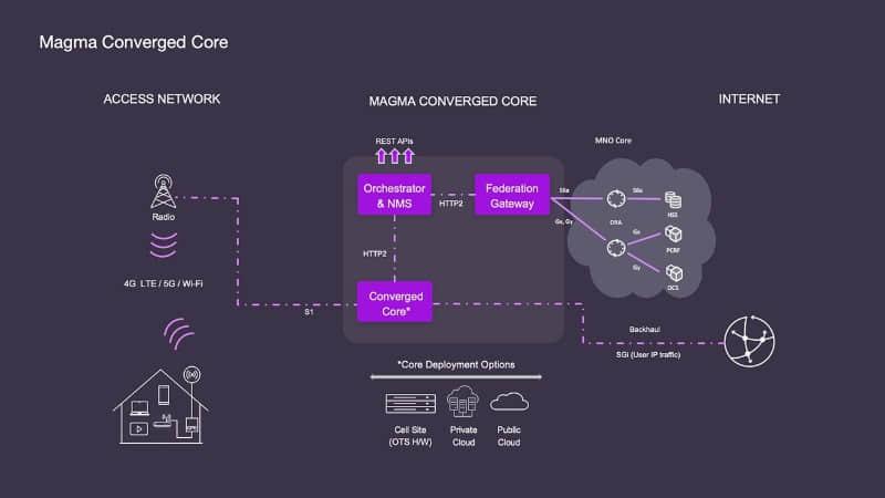 Magma 由 Facebook 开发,并于 2019 年开源,旨在帮助电信运营商快速、便捷地部署移动网络。这种容器化的网络功能可以与移动网络现有的后端整合,并在网络边缘轻松推出新服务。Magma 运营商可以大规模地构建和增强现代高效的移动网络。它可以与现有的 LTE 和新近诞生的 5G 网络进行整合。