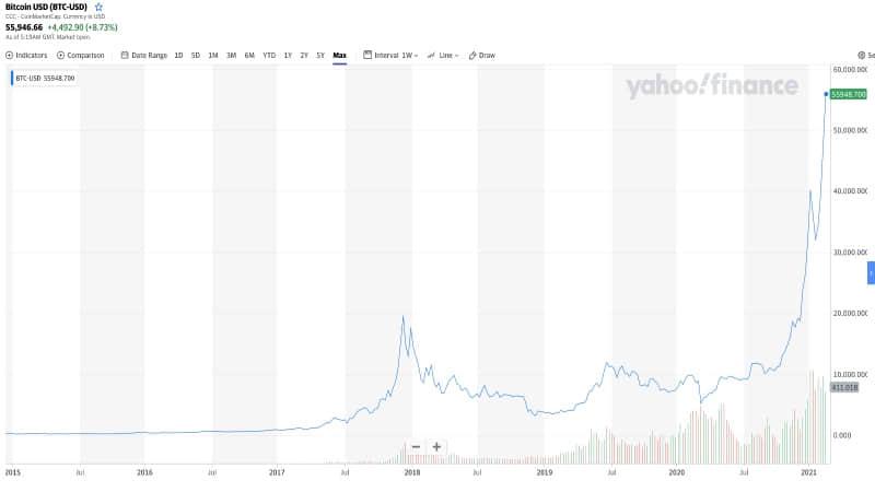 比特币突破 55000 美元新高,总市值突破 1 万亿美元