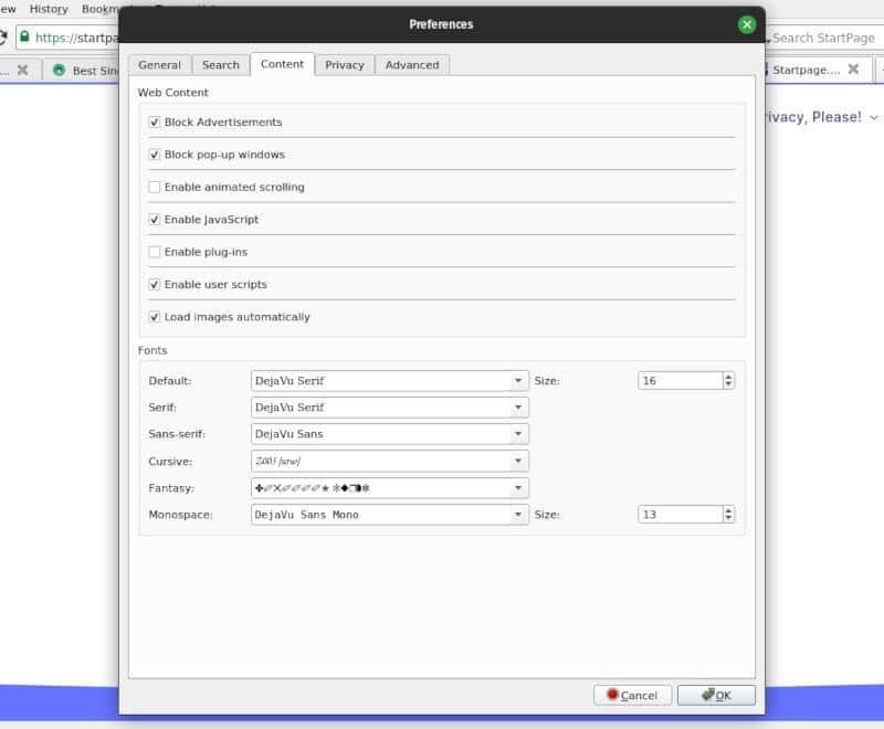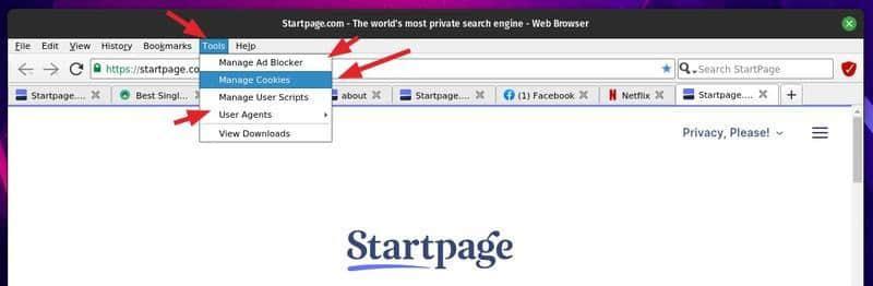 - 隐私友好的默认搜索引擎 - Startpage (你可以更改)