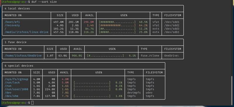 不过,duf 似乎是一个有用的终端工具,可以检查磁盘使用情况和可用空间,它是用 Golang 编写的。Abhishek 建议我试一试它,但我对它很感兴趣,尤其是考虑到我目前正在学习 Golang,真是太巧了!