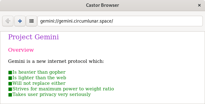 Gemini 站点提供了一些使用该协议的主机列表。以下显示了使用 Castor 访问这个站点的情况: