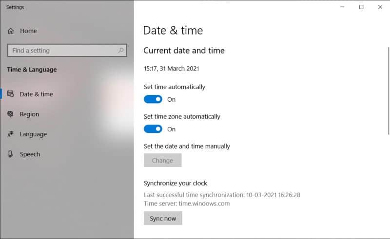 同样,如果我在 Windows 中通过自动时区和时间按钮来设置正确的时间,你知道会发生什么吗?现在它将在系统上显示正确的时间(15:00),并将此信息(注意图片中的“同步你的时钟”选项)同步到硬件时钟。