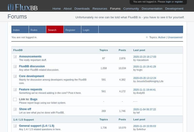 FluxBB 是另一个简单、轻量级的开源论坛。与其他的相比,它可能维护的不是非常积极,但是如果你只想部署一个只有很少几个用户的基本论坛,则可以轻松尝试一下。