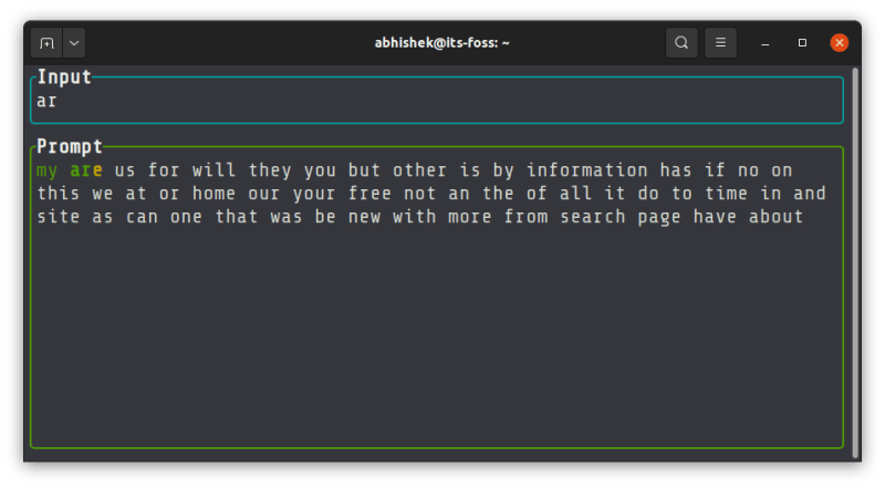 默认情况下,你有 50 个单词可以练习,但你可以用命令选项来扩大。你还可以使用一个自定义的文本文件,用它的内容来练习打字。