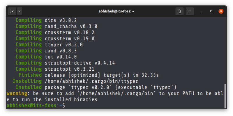当你的系统安装了 Cargo,就可以用这个命令来安装 Ttyper: