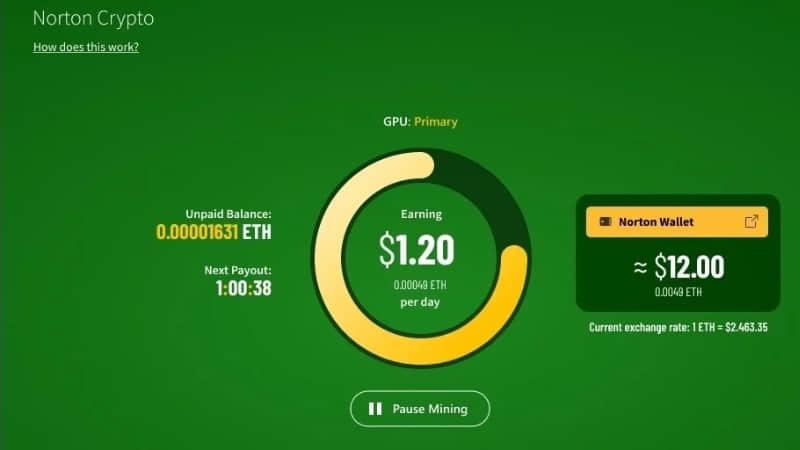 诺顿销售带有以太坊挖矿功能的杀毒软件