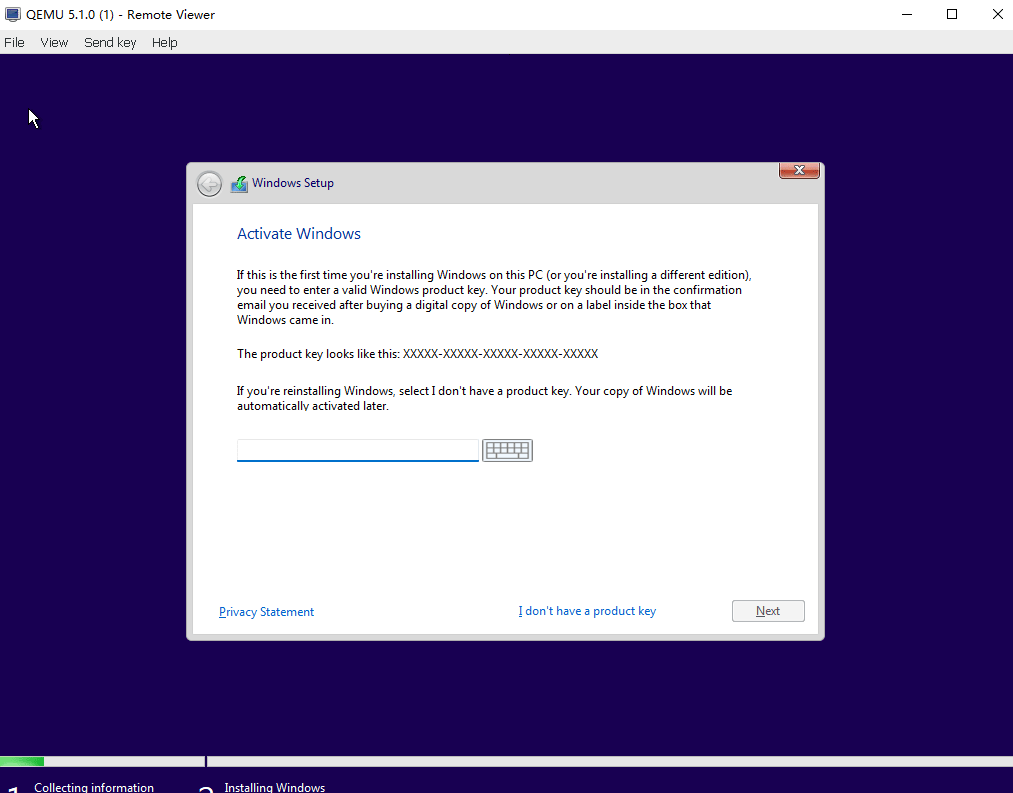 接着需要输入密钥,但我们并没有,此处选择“I don't have a product key”即可。