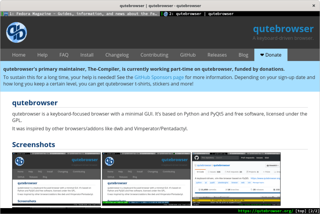 关于 qutebrowser 浏览器的更多信息可在此链接中找到:https://qutebrowser.org/