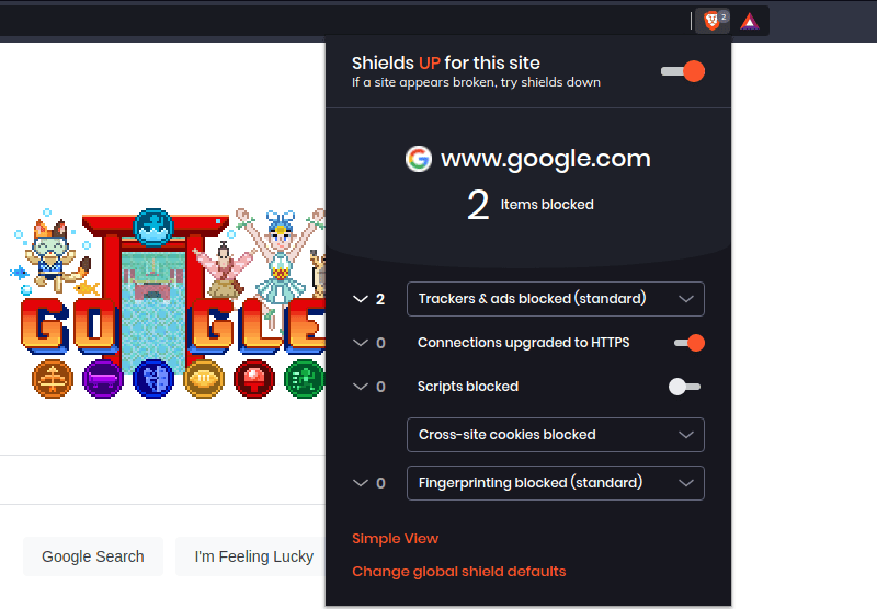正如我之前提到的,Brave 在阻止跟踪器和广告方面非常积极。默认情况下,它已经启用了屏蔽功能。