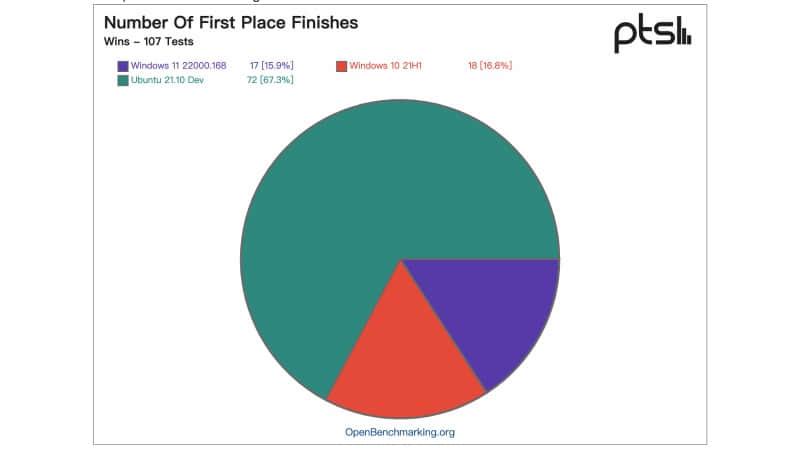 Ubuntu 21.10 在性能测试中几乎完胜 Windows 10/11