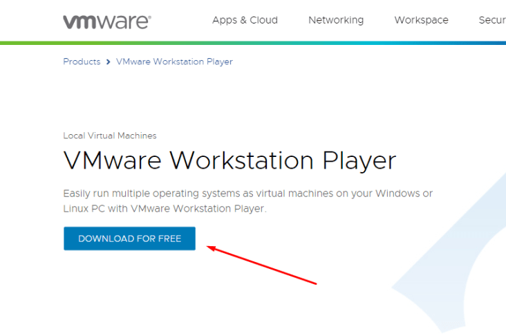 前往 VMWare 的 Workstation Player 官方网页,然后点击 “Download For Free” 按钮。