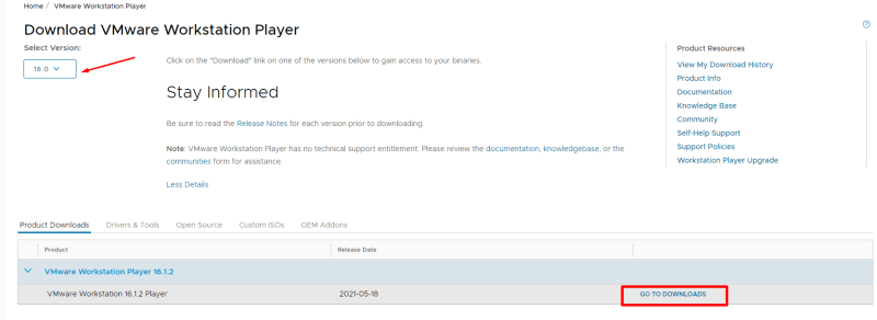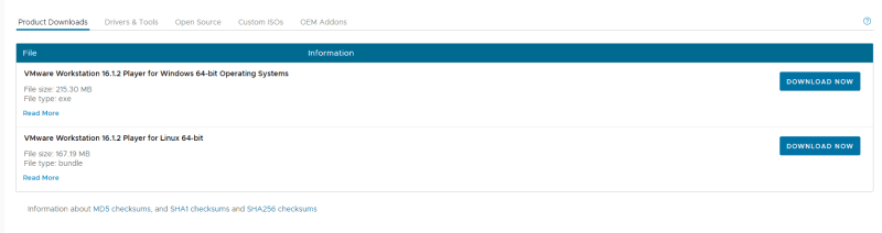 前往其 官方下载页面,下载可用的预构建的 VMware 镜像。