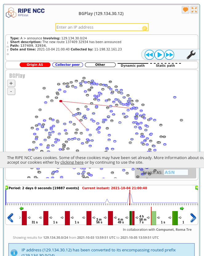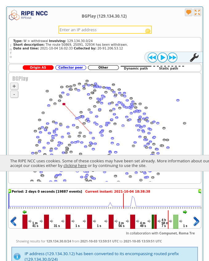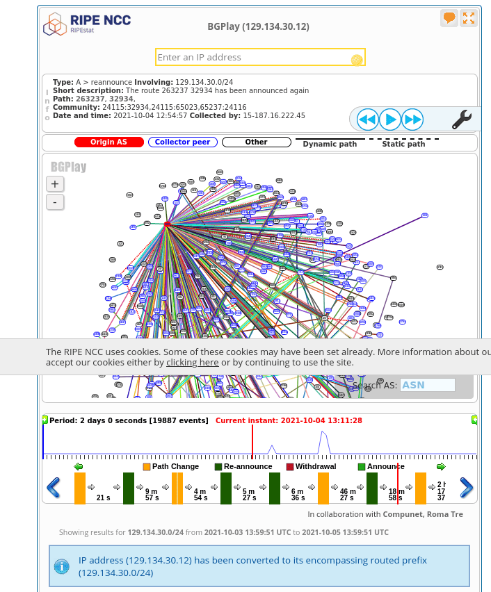 该工具在 https://stat.ripe.net/special/bgplay。我输入了 IP 地址 129.134.30.12(Facebook 的一个 IP),如果你想一起试试。