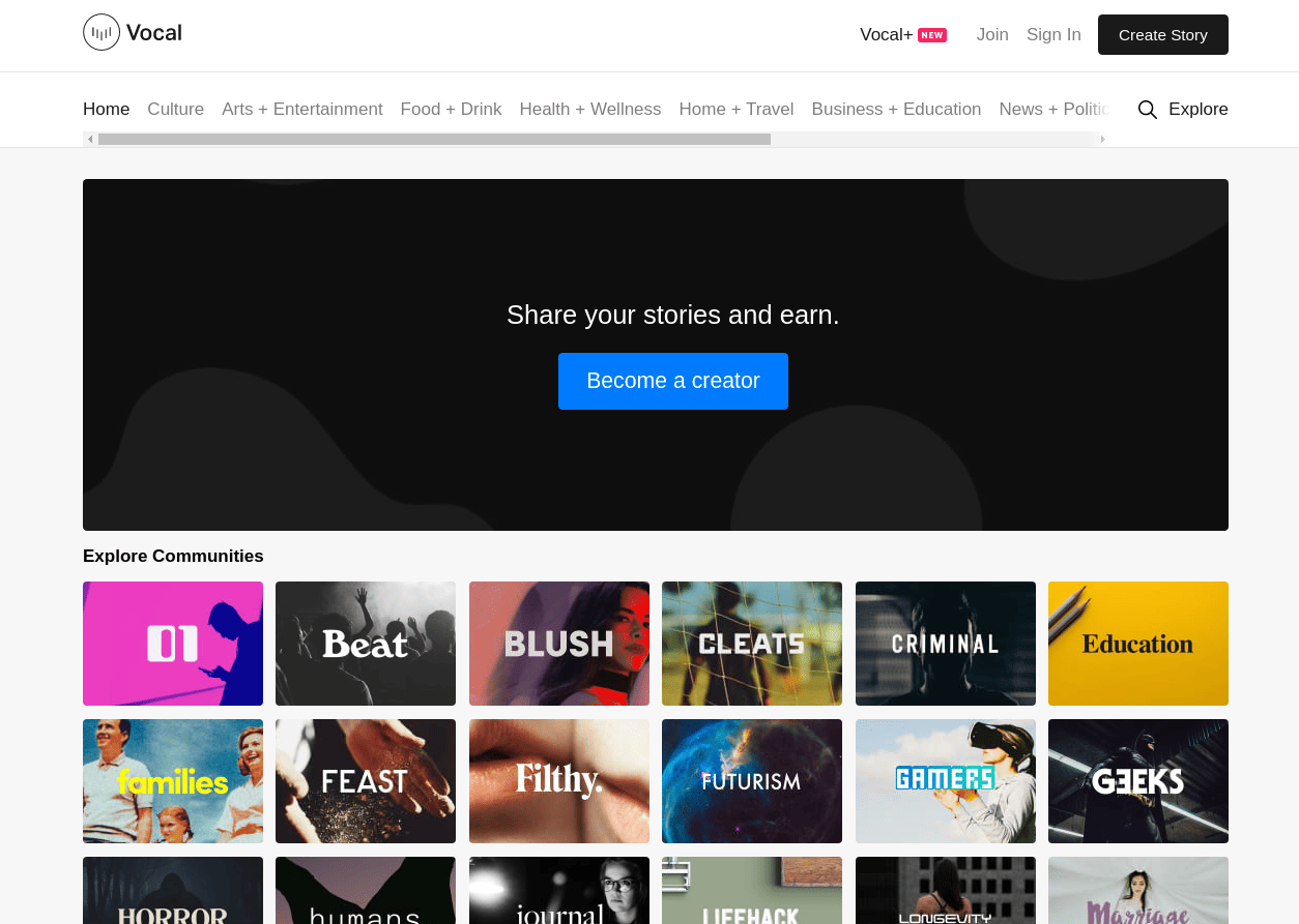 Vocal 的不同之处在于,它允许人们制作观众感兴趣的作品而获得报酬。作者的页面每次被浏览都可以获得一小笔钱,还能获得其他用户的捐赠。有很多专业人士在这个平台上展示他们的工作,但对于大多数普通用户来说,他们只是把 Vocal 当作一个兴趣爱好,碰巧还能赚些零花钱作为奖励。