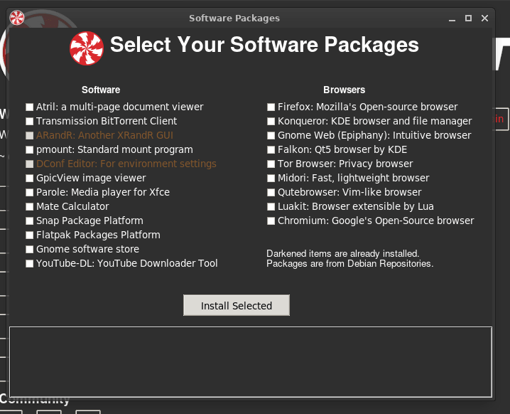 例如,你在 Peppermint 11 中没有预装默认的网络浏览器。你可以快速启动软件包选择器,安装 Firefox、GNOME、Tor、Falkon 和 Chromium 等浏览器。