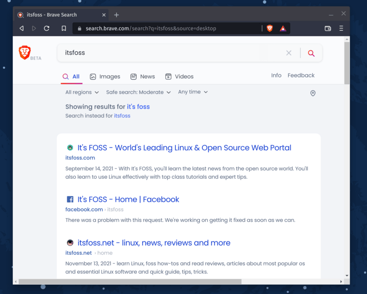 Brave 搜索是 Brave 浏览器的默认搜索引擎。虽然这款搜索引擎并非开源,但 Brave 搜索所带来的功能足以使其成为其他隐私保护型搜索引擎的适当替代品。