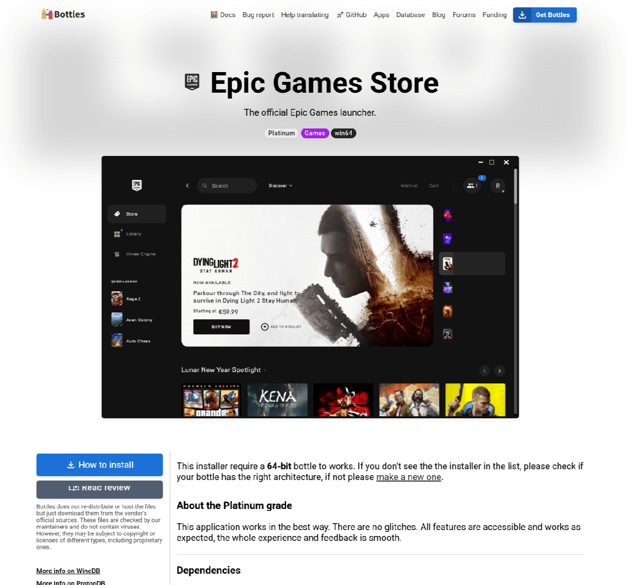 需要注意的一点是,并不是所有的安装程序都能完美无缺地工作。因此,开发者引入了一种叫做“等级”的东西,指的是安装的程序的顺利工作的程度。分级范围从铜级到白金级,与 Wine 的兼容性评级方式非常相似。