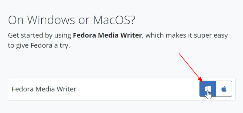 你将看到针对 Windows 版本的下载 “Fedora Media Writer” 工具的选项。