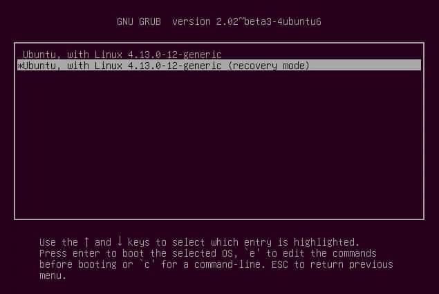 在基于 Ubuntu 的发行版中,你也可以看到一个恢复选项。