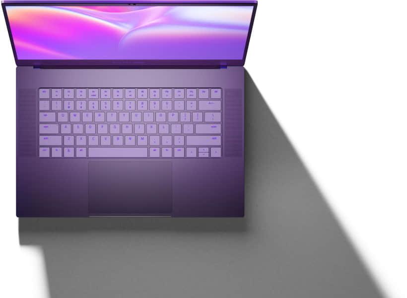 你只能在盖子上找到 Lambda 主要标志,在屏幕的底边框上找到 Razer x Lambda 的文字。而且,紫色的风格贯穿始终,Lambda 在这里主导了其品牌宣传。