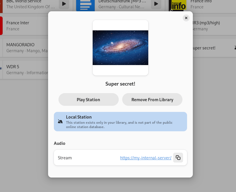以前,你必须依赖 radio-browser.info 库中的可用电台。