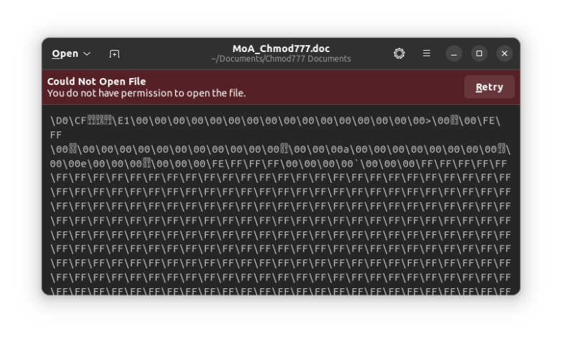 归根结底,GNOME 文本编辑器依旧是一个文本编辑器,无法也无意用来打开 doc 文件。如果你执意用它要打开 doc 文件,你看到的就只有一堆乱码。当然,pdf 文件也是如此。