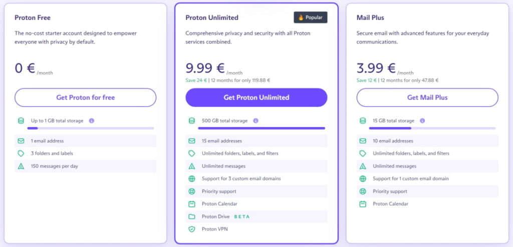 - 新的定价计划,为 Proton 网盘提供更多存储空间。