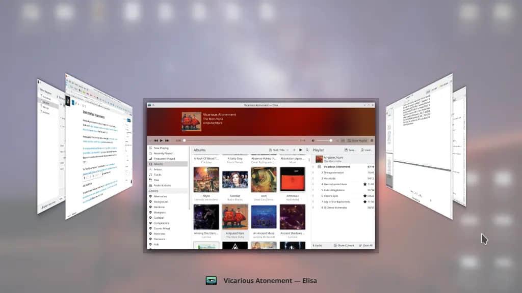 以及,任务切换效果 “ 覆盖 ” 和“ 翻转 ” 使用了 Plasma 对话框作为背景。