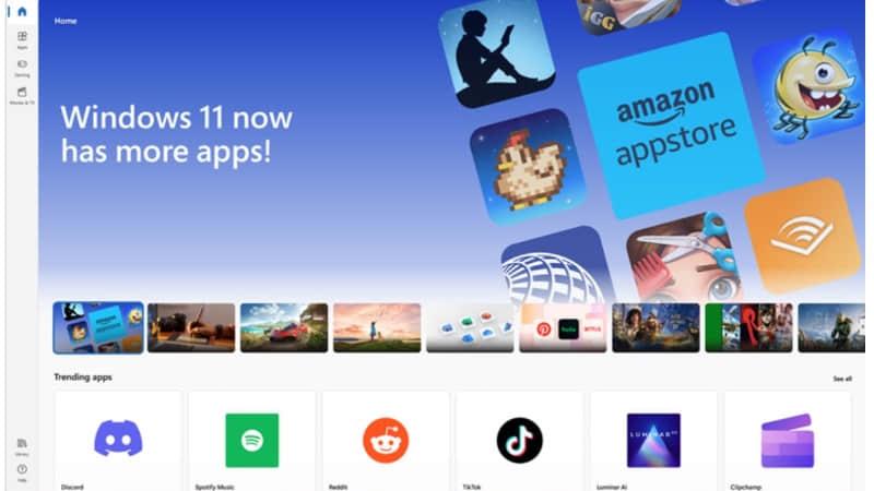 微软准备发布 Windows 的安卓子系统(WSA)的 1.0 版本,它可以运行安卓虚拟机,安卓应用就像 Windows 的应用一样运行。通过 WSA 可以运行 “50,000 个应用程序”,但是这些应用程序来自于亚马逊的应用商店,而不是谷歌的安卓商店。也就是说你找不到谷歌的安卓应用,微软的也找不到,Twitter、WhatsApp、Slack 等等都没有,只有各种游戏和一些看起来就山寨的应用。